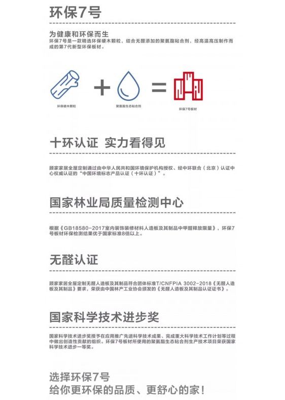 每个家庭都需要一份居住环境的心安,再漂亮的装修,有害就大打折扣。以“零甲醛”标准生产的顾家家居环保7号因此而生。
