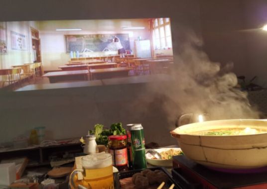 投影仪到手之后,我自己大概捣鼓研究了一会儿,因为基础的配对都有导航,所以并不需要看说明书,除了后续的一些遥控操作,基本是小白也能快速上手的简易程度。巧的是12日晚饭刚好叫了朋友来家里火锅局,所以我就直接把投影架在了边上,然后几个人一边涮火锅一边看电影,享受美食的同时又能像小时候一样围在一起看大屏电影,这感觉简直就是我理想中的冬日火锅趴~其实投影仪和电视相比,最特别的地方不就是可以让好多人一起欣赏大屏幕的精彩吗,我在心里暗暗想着,趁着天气冷,这样的局可得多组组!