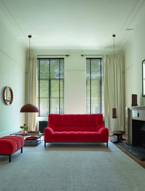不仅如此,轻轻向后倾斜的座椅坐垫,具有视觉特征的护腰,为头部及肩部提供支撑且高耸至耳边的座椅椅背,缓缓倾斜的扶手以及附带的一个脚凳,都让Phileas沙发倍感舒适。