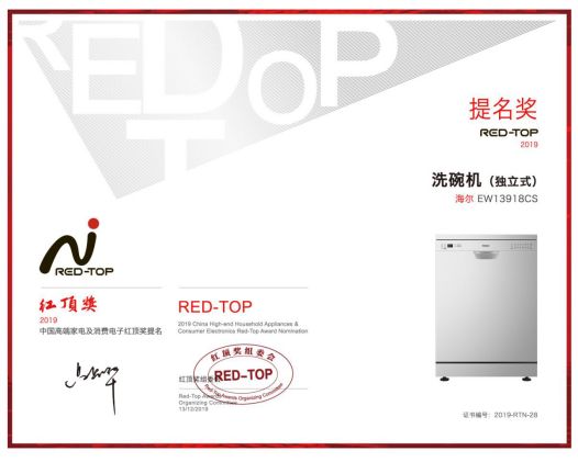 12月13日,红顶奖各奖项获奖名单正式揭晓,海尔微蒸汽洗碗机入围该奖项。