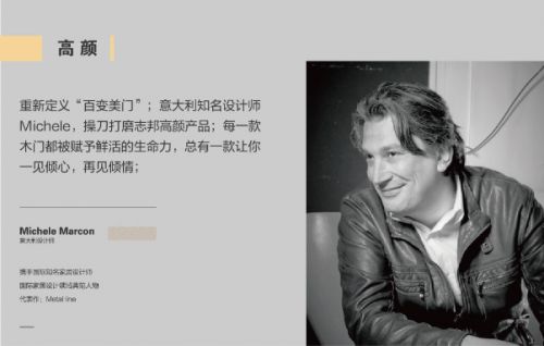 意大利知名设计师Michele,操刀打磨志邦高颜产品,将美学原理与生活相融合,每一款木门都被赋予鲜活的生命力,总有一款让你一见倾心,再见倾情。
