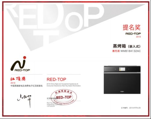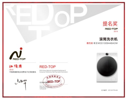 【12月13日,北京】日前,由中国家用电器协会指导举办的第11届中国高端家电趋势发布——暨红顶奖颁奖盛典于12月13日在北京盛大开幕。国内外知名家电企业、品牌代表汇聚一堂,共同分享家电行业近期的发展成果,展望消费升级趋势下家电产业的新动力、新机会。百年全球家电品牌惠而浦2019年主打的明星产品,帝王系列滚筒洗衣机WDD100944BAOW和W11系列嵌入式蒸烤箱WMB184132AC,凭借智能化、健康化、高端化的产品特色荣获红顶奖提名。惠而浦中国更因今年6月前往贵州参与“红顶公益行”的暖心表现,荣膺“红顶公益奖”。
