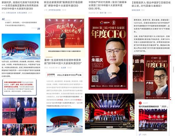 盛典结束后,活动在行业形成了强烈反响,东易日盛、欧亚达、今朝装饰、惠达卫浴、顶固集创等官方微信进行了相关报道,并给与了本次活动高度的肯定。不少现场参与者表示,活动收获满满,期待来年再相聚。(来源:乐居财经 作者:张华)