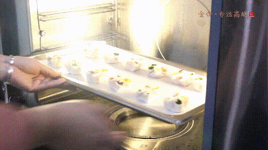 5、放进金帝X900Z蒸消一体集成灶,选择普通蒸模式,100℃蒸10分钟