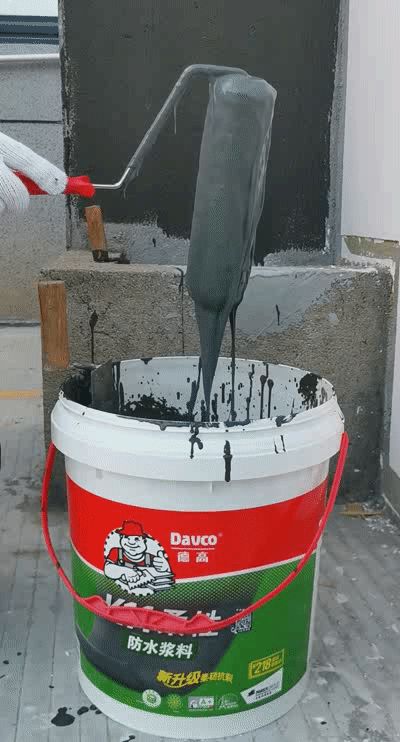 静止十分钟后,浆料也不会结块,没有形成沉淀物分层,小浪用滚筒刷沾些浆料,让其自然流下,也是很顺畅的。可以看出,德高K11柔性防水浆料粘稠度适中,不会因为太粘稠而影响涂刷效率,也不会因为太稀而影响涂刷效果。