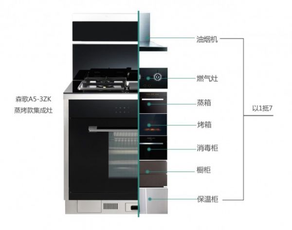 森歌,中国集成灶排名前十,今年推出A5-3ZK蒸烤款集成灶,让人爱上厨房,爱上做饭。