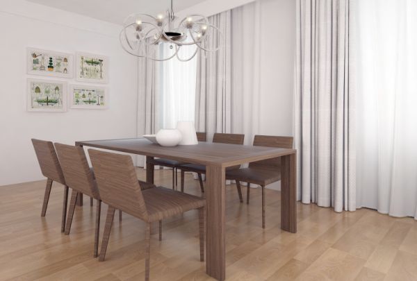 深浅交错的超耐磨木地板舒展一室温馨暖意,以开放式格局规划客、餐、厨区域。