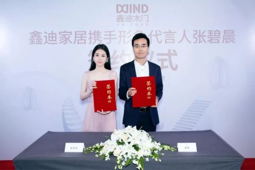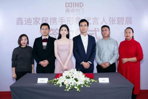 近日,张碧晨空降鑫迪家居品牌形象代言人签约仪式现场,与鑫迪家居副总经理李军等公司领导共同完成签约仪式并合影留念。当天,张碧晨身穿长裙,造型简约优雅而不失活泼。
