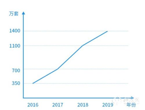 从市场份额来看:在2016年,我国智能锁产业规模达到350万套;2017年,我国智能锁销售规模增至700万套;而在2018年,我国智能锁产销售量在1000-1200万套之间;2019年上半年,智能锁出货量同比2018年上半年出货量下降5%,数量约700万套,全年约在1400万套左右。