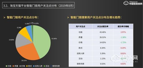 根据《2019年中国智能锁行业电商数据报告》统计,智能锁单品销售额排在前三的分别是:小米米家智能锁(含青春版)、洲明翰源智能锁、德施曼智能锁;智能锁搜索用户关注点排在前三的依次是:功能、质量、价格。