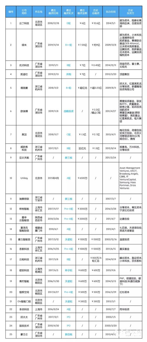 传统锁具企业:包括了玥玛、金点原子、通用、美保利、顶固、忠恒、雅洁、汇泰龙、名门等多家知名企业。