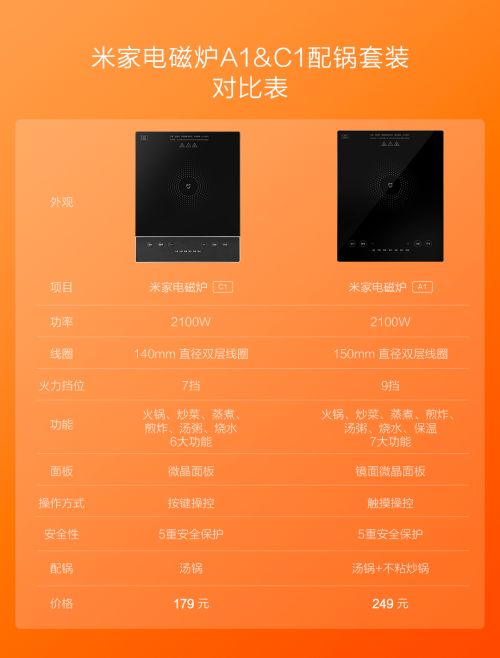 米家电磁炉A1+汤锅+不粘炒锅配锅套装与米家电磁炉C1+汤锅配锅套装12月24日暖心上市,一次性解决所有难题!两个套装分别定价249元与179元。冬季终极浪漫, 米家电磁炉A1&C1配锅套装来安排!