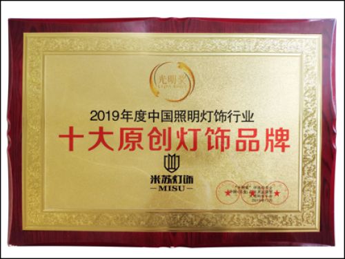 米苏灯饰凭借领先的产品原创能力,在“光明奖”评选中,从众多品牌中脱颖而出,一举斩获光明奖“2019年度中国照明灯饰产业——十大原创灯饰品牌”荣誉称号。