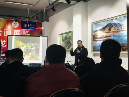 四川省油画协会会员、意大利托斯卡纳学院中国区教授伍刚老师分享演讲——艺术的散步。他将艺术史进行梳理,从艺术的起源、艺术的觉醒、古代油画到现代油画的发展、20世纪的现当代艺术、二战之后的艺术聊到后现代主义,给现场观众带来了一场艺术的盛宴。