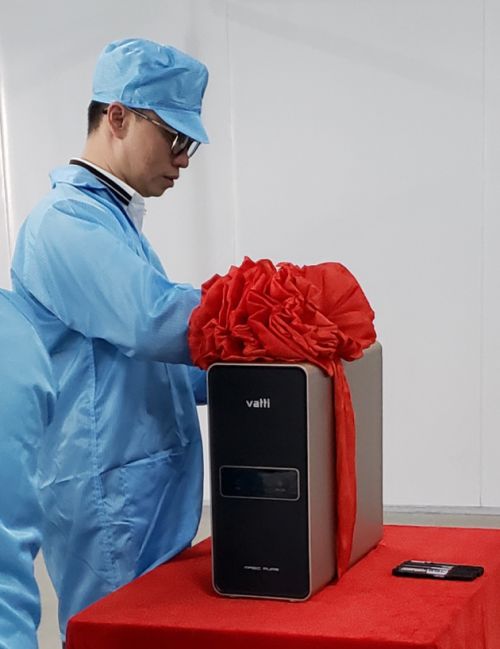 正是基于对于高品质的追求,华帝净水2019年又获得中国家用净水领军品牌的荣誉,百尺竿头,更进一步,才有了华帝净水第1台V18 Plus净水机的下线。