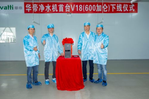 11月27日,华帝净水新产品下线仪式在工厂举行,本次下线的新产品为V18 Plus(600加仑)净水机。意味着华帝提前布局2020,进一步提高大通量的销售占比,推动行业健康发展。