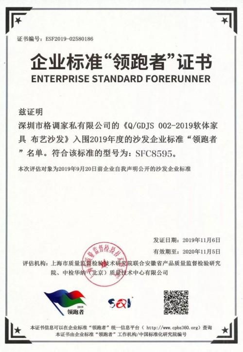 在这个快餐时代,创新的定义或许不是颠覆而是坚守品质为初心。事实证明,格调家私的坚持是对的。即便是在市场竞争日趋严峻的今天,格调依旧凭借着超高的质量口碑依然拥有不俗的市场成绩。并且作为第一批获得“中国绿色家具优品”的家具企业,格调家私还凭借着过硬的服务标准与品质成为行业的标杆企业,入围了2019年度第一批沙发企业标准“领跑者”名单之列。