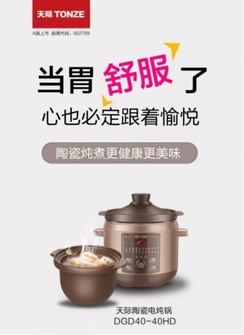 冬天到了,起床可能要在人生的困难排行榜上升几个名次了~想念妈妈熬好的热乎乎的白粥,睡醒来一碗,暖身暖心,即使出门面对凌冽的寒风,也不会感到那么冷~其实用可预约准备的天际电器陶瓷电炖锅,前一个晚上设定好,第二天自动烹饪,不用早起也能拥有暖胃早餐。