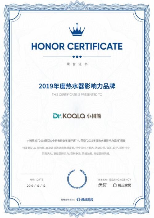 对产品的逐一苛求,成就小树熊的王冠。2019年度腾讯家居行业评选品牌盛典,行业专家委员会的推荐与消费者的支持让小树熊再添殊荣,获得“2019年度热水器影响力品牌奖”。这意味着设计不是高高在上的“空中楼阁”,而能真正利众并夺取市场的视线。