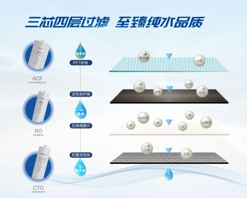 反渗透膜是RO净水器的核心,新品开能子母星II代全厨净水机(RO款)采用原装进口膜片配合多页卷膜工艺成为过滤环节中最核心的一道屏障,特殊工艺有效提高膜元件抗污然能力及其100%气密性检测,大大延长滤芯使用寿命;三芯四层过滤,ACF复合滤芯(PET折纸+活性炭纤维)超大吸附表面,孔径细密,纳污能力更强,有效去除水中有害物质;RO滤芯去除重金属,后置CTO活性炭滤芯进一步祛除异味,提升口感!
