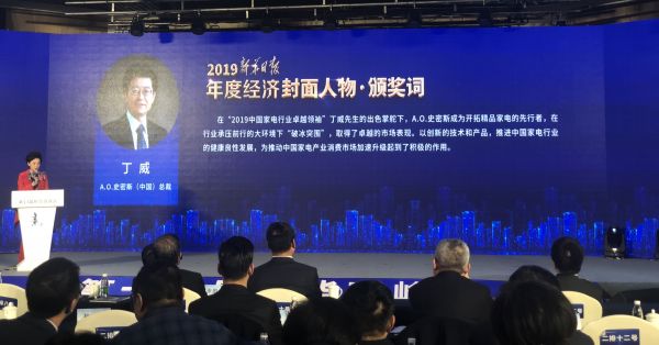 12月21日,“第十三届新华高峰会”在南京举行,A.O.史密斯集团高级副总裁兼中国投资公司总裁丁威先生当选:“2019新华日报年度经济封面人物”。主办方认为,在丁威先生带领下,A.O.史密斯作为开拓精品家电的先行者,在行业承压前行的大环境中破冰突围,取得了卓越的市场表现,以创新的技术和产品,推进中国家电行业的健康良性发展,为推动中国家电产业消费市场加速升级起到了积极的作用。