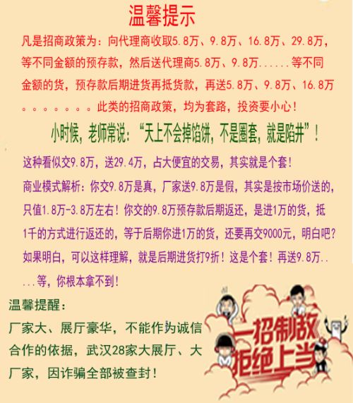 还有一种需要慎重考虑的厂家,那就是厂房大,展厅豪华的厂家。您如果去走访考察就会发现一个奇怪现象,越是厂家大,展厅豪华的厂家越是产品价格便宜,越是给的优惠政策多,这个不合常理啊,费用高,成本高,价格高才对啊,所以这背后的猫腻也就不用多讲了吧?