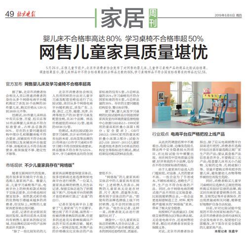 尤其是今年“六一”前夕,北京市消费者协会发布的网售婴儿床、儿童学习桌椅产品比较试验结果显示,网售婴儿床80%不符国家标准,儿童学习桌椅不符合率52.5%,其中20套桌椅当中,存在结构安全问题的多达12种产品。婴儿床方面9种产品出现了危险孔隙及间隙,6种产品出现床头及围栏板条开裂、脱落、断裂。3种产品床铺面断裂;3种产品围栏高度达不到标准要求,存在婴儿翻出床的危险;2种产品稳定性差,床体容易倾翻;1种产品侧板不能自动啮合,存在婴儿跌落隐患。