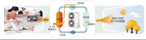 同时,为了节能省电,日立强热地暖中央空调采用空气源热泵技术,从室外大自然中获取免费的空气能,通过较少的电能,将其转化成室内热量,极大减少了用电成本,比燃气式采暖炉节能29.3%,比电加热地暖节能66.7%。