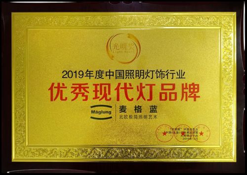 2019.12.19,由中国照明电器协会担任指导单位,大照明全平台、中国(五金)交电渠道联盟联合主办的“光明奖”2019中国照明灯饰行业年度评选,终于迎来荣耀揭榜时刻!麦格蓝—北欧极简照明艺术,凭借引领国际前沿的现代风格,荣耀摘得2019年度中国照明灯饰行业“年度优秀现代灯品牌”荣誉称号。