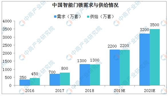 据了解,2017年中国智能锁行业整体销量超过700万套,到2018年,仅上半年全国智能锁行业的整体销量就超过了830万套,增长势头明显。2019年,中国智能门锁销量将达到2200万套。预计未来5-10年,智可以锁行业将呈现出60%以上的增长,到2020年国内智可以锁产量将突破3200万套。