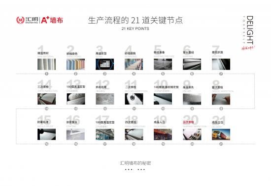 从原材的选取起,汇明A+墙布便严格把控。4小时的80度高温水洗,三次180度高温处理,都能保证产品在生产过程中附着的杂质被彻底清除。汇明A+墙布的21道品质工序,保证了产品的环保与无污染。
