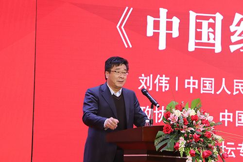 在专题演讲环节,中国人民大学校长、教授,著名经济学家,全国政协常委、中国人民银行货币政策委员会委员、中国经济50人论坛专家成员刘伟作《中国经济形势与对策》主旨演讲。
