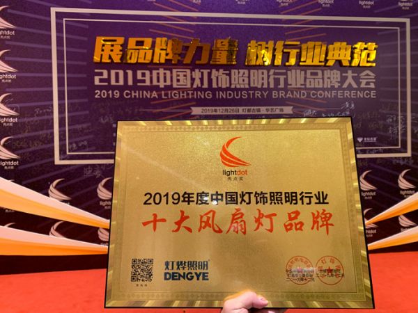 喜报!灯烨照明连续2年蝉联“2019年度中国灯饰照明行业十大风扇灯品牌”