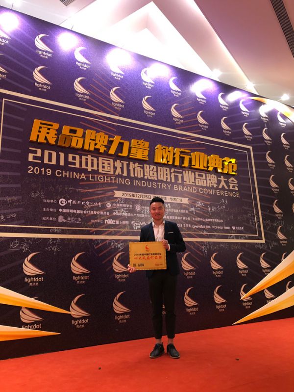 2019年12月26日,在由中国照明电器协会、中国建筑装饰协会、中山市古镇镇人民政府指导,并由中国照明电器协会灯具行业委员会、中山市古镇镇生产力促进中心,中山市市场监督管理局古镇分局、亮点奖(中山)品牌管理有限公司联合举办的,以“展品牌力量,树行业典范”为主题,在灯都古镇华艺广场华宴饭店隆重举行的——“2019中国灯饰照明行业品牌大会”上,在汇聚了行业的数百家企业、近600位行业专业人士、盛典恢弘的颁奖典礼中,