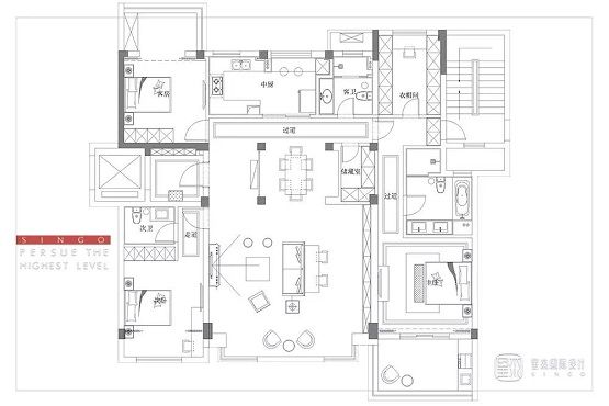 我做的第一稿设计,中式的留影还是蛮重的,当时业主看完后很满意,就连坚持现代简约的男业主都没说不好,这时候,照理说我该顺坡而下’,顺势深化,拿下这个案子,但房子交付后,男业主真能住的开心吗?