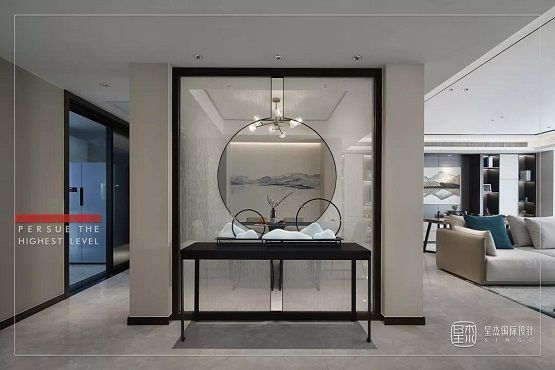 空间的风格是现代新中式,用个文雅点的说法,即:以现代手法演绎传统的元素、符号,营造出东方写意的意蕴,使空间具有东方文化的内涵。我对户型结构的改造并不大,由于业主家庭入住的人口不多,我更多的是去优化主人在空间里的动线,合理规划各个区域的布局和功能。