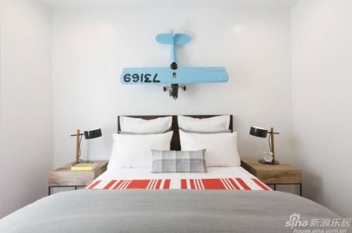 主卧窗户和镜面的设置增加了空间的通透性,灰白相间的床罩、简易的茶盘和几何工艺品打破了空间的沉闷,让卧室空间更加轻松惬意。和主卧相比,次卧空间更加轻松且富有童趣,木质的床头柜和床头灯透着日式风格,在简单的空间中增加了一份设计感。