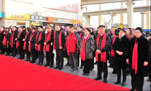 尽管天气很寒冷,但开业仪式现场却红火热烈,来自新商业的嘉宾们佩戴红围巾,脸上洋溢着热烈的笑容。华信通电讯有限公司总经理张永春先生,波司登服饰有限公司--华北区总经理赵来兵先生作为商业品牌代表致辞,北京屈臣氏个人用品连锁商店有限公司区域总监张禹先生,北京必胜客比萨饼有限公司开发总监刘丹阳先生,宝德联行资产管理有限公司总经理黄显峰先生,中国黄金北京金石尚品商贸有限公司总经理黄令余女士,北京雅戈尔服饰有限公司总监陈能杰先生,北京九牧王服饰有限公司总经理高本初先生均莅临现场。