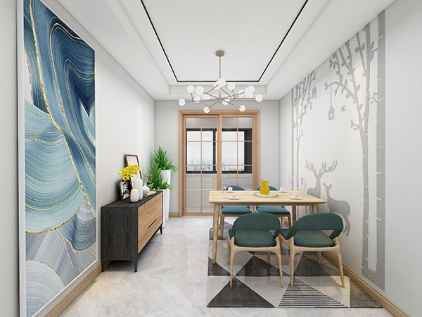 3. 餐厅:整个房间都围绕着“自然、舒适”展开,餐厅的墙面同样使用硅藻泥打造意境风景,配合印象挂画,别具艺术格调,优雅又浪漫!
