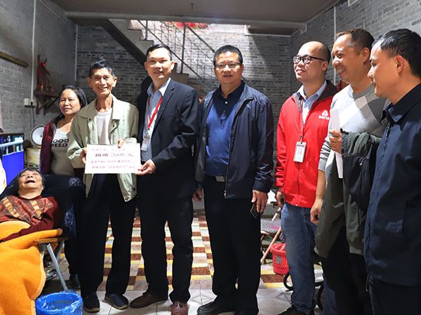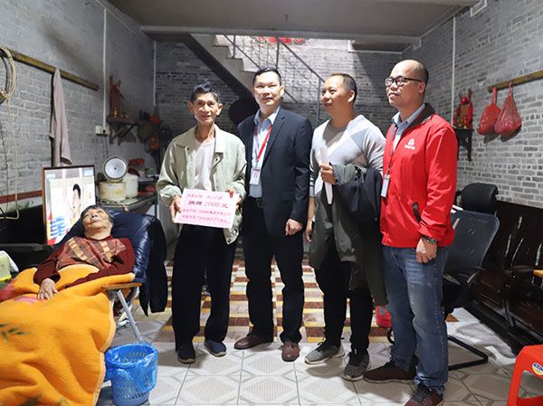 元月2日,在水口镇党委张金海副书记、寺前村委会张其昌主任书记及镇、村委相关领导的带领下,艺和集团慰问团在谭经理的带领下前往水口镇辖下的寺前村委会沙湾村张其俊村民家里,得知张其俊村民一家三口,两名中年主力没有固定的工作,而且还要照顾一位行动不便、长期卧床的老人家,家庭情况相对困难。因此,艺和集团的同事代表当即捐赠2000元以作新年慰问金,略表心意。