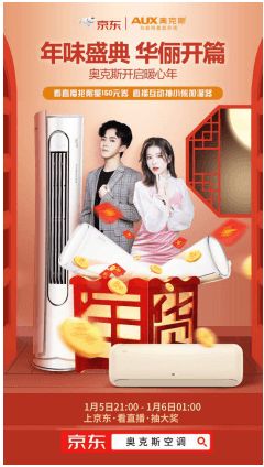 据了解,奥克斯空调将于1月5日在京东平台正式开启年货预购直播活动,届时,知名直播达人将一同携手为广大消费者带来“加购收藏领优惠券”、“0点抢购”、“万”券齐发等空前超值的空调认购会,年货优惠抢先享!