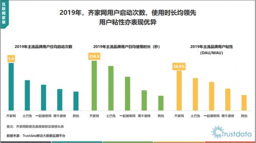 此外,Trustdata 2019年报告指出,齐家网用户日均启动次数、日均使用时长均高于明显同业竞争者,用户粘性领先行业。作为用户忠诚度的重要指标,用户粘性的高企体现的是用户对齐家网平台价值的认可,可见齐家网在用户体验改善、用户维护方面下足了功夫。