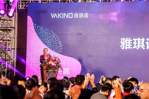 晚间,迎来了本次年终庆典的盛大晚宴。首先,雅琪诺董事长王旗对全场嘉宾的到来表示了热烈欢迎。他谈到,近两年国内经济形势遇冷,房地产也迎来了转折期,泛家居的整体发展态势下滑,墙纸墙布行业作为其中一大品类也经历着一样的状况。随着行业竞争加剧,价格战层出不穷,产品利润空间下滑,多品类发展是头部企业脱离这一泥潭的出路。王旗指出,软装将成为下阶段的竞技场,品牌化发展也必将是主流。在如此严峻的市场环境之下,2019年雅琪诺仍旧取得了令人瞩目的行业成就,墙饰方面获得了25%的增长,单品牌营收居于行业前五,这份漂亮的答卷离不开每一位合作伙伴的努力与所有雅琪诺工作人员的付出。同心、同行才能迸发出强大的力量,共建方能共赢!