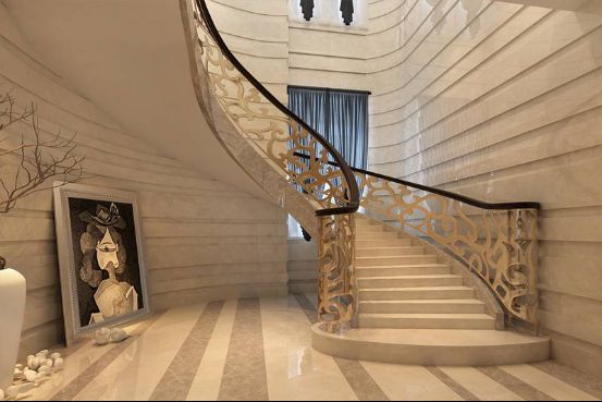 大理石(瓷砖)天生“贵气”,图案质地等选择多样,也是楼梯装修的“常客”。但是选用这种材质时可不能光顾着欣赏它的美,还要注意做好防滑措施,不然楼梯就要变成滑滑梯了。
