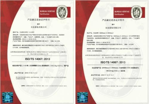 近日,根据国际标准组织(ISO)的碳足迹计算标准,检验机构对“全友沙发”和“全友床垫”两种产品在生命周期内温室气体排放进行了评估。经查证,两种产品的排放量均达标,全友获得BUREAU VERITA(必维国际检验)颁发的“产品碳足迹查证声明书”。