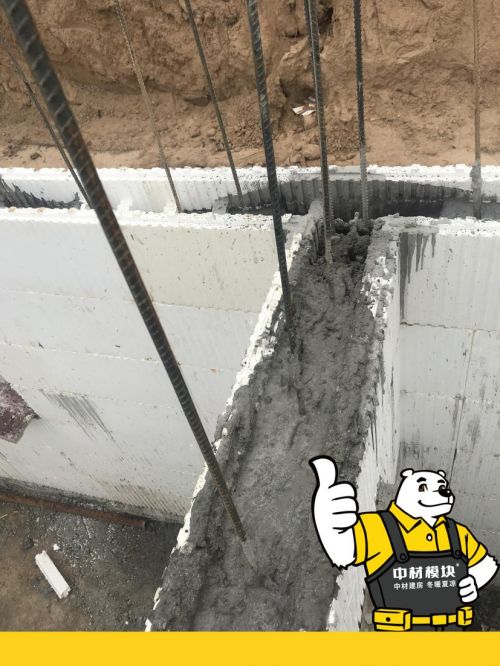 模块的安全性,整个建筑体用钢筋混凝土浇筑为一体,为钢筋混凝土剪力墙结构经结构计算可用以抗震烈度不大于8度的建筑物。EPS模块防火级别为B1级,抗震烈度最高为8度,如果墙面复合玻化微珠或粘贴瓷砖防火可达到A级,安全性能更好。两边的板材在施工过程中充当模板的作用,施工完成后作为保温层,模块空腔内钢筋混凝土墙体,这13CM的C25钢筋混土墙相当于80CM砖墙的强度。