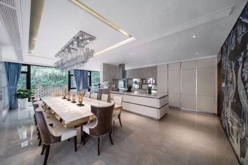 厨房是先生的阵地,开放式的西式风格,贴合了先生的喜好,这点很好的体现了星杰装饰别墅专属设计的理念。西式餐饮,最讲究用餐的环境,琥珀色的琉璃烛台,烘托着整个餐厅的氛围,石纹的台面配以金属的围边,简约大气,皮质与布艺结合的餐椅,分毫未丢掉生活的品质。
