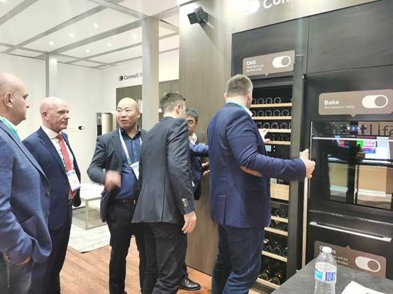 进入厨房,21英寸大屏冰箱会根据用户的健康信息来推荐食谱,对食谱中缺少的食材用户可以在屏幕上直接下单购买。而且冰箱还可以跟酒柜联动,对酒柜内的存储状态一目了然。