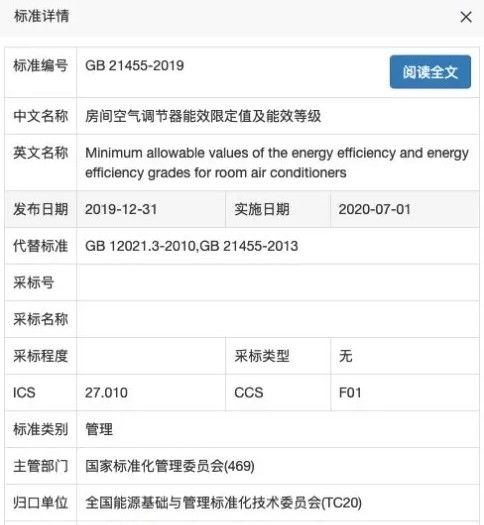 1月6日,经国家市场监督管理总局(国家标准化管理委员会)批准,GB21455-2019《房间空气调节器能效限定值及能效等级》(以下简称“新国标”)正式出台。新版国标最大的变化就是,统一了变频空调和定速空调的能效评价方法,均采用季节能效来定级。这意味着,现有的低能效、高耗电的定频空调和变频3级能效产品都面临退市。