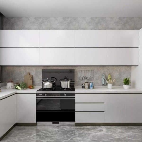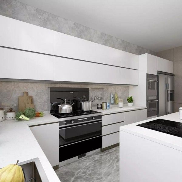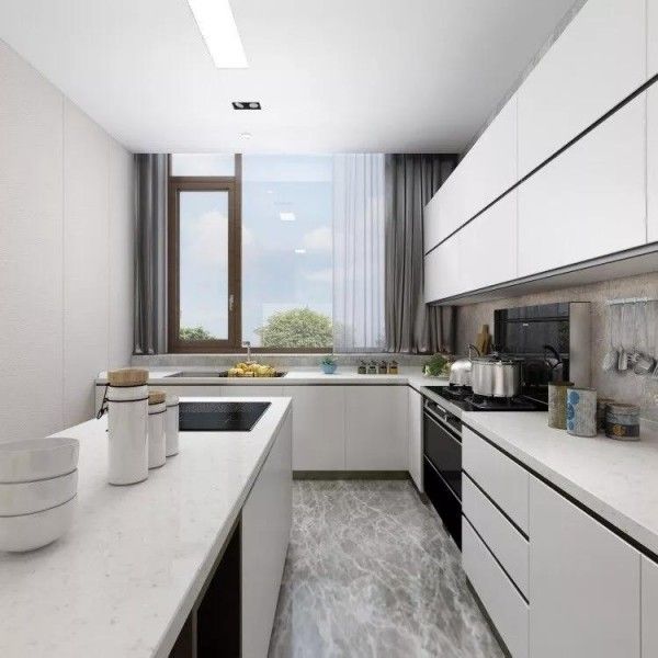本期分享的2020厨房装修轻奢效果图,为现代简约风格,是当下流行的黑白灰设计,纯白橱柜辅以黑色线条,简洁且富有层次感。搭配奥田消毒柜款集成灶,为厨房增添了现代科技感,数码触控智能灵动屏,操作便捷,生活品质有效提升。